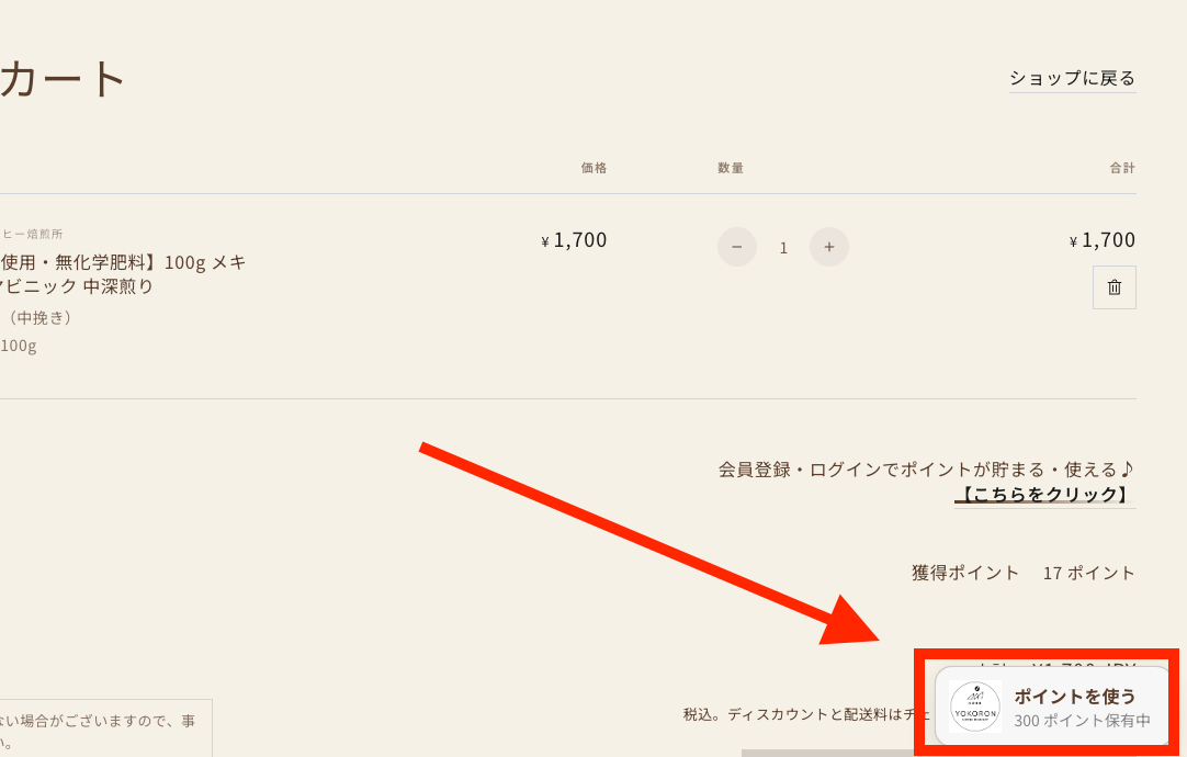 ヨコロンコーヒーオンラインショップでは、100円で1ポイントが貯まります♪