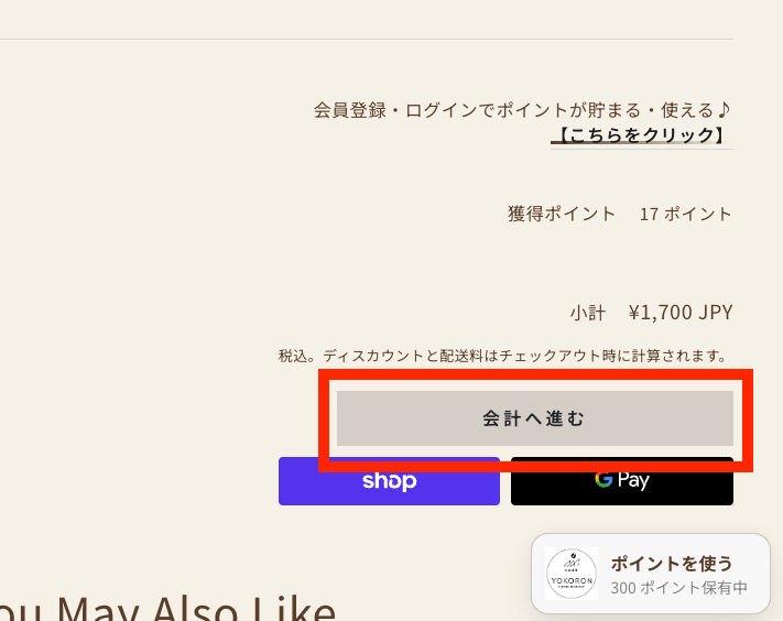 使用したいポイントの入力が終わりましたら、そのままお会計画面へ進みます。